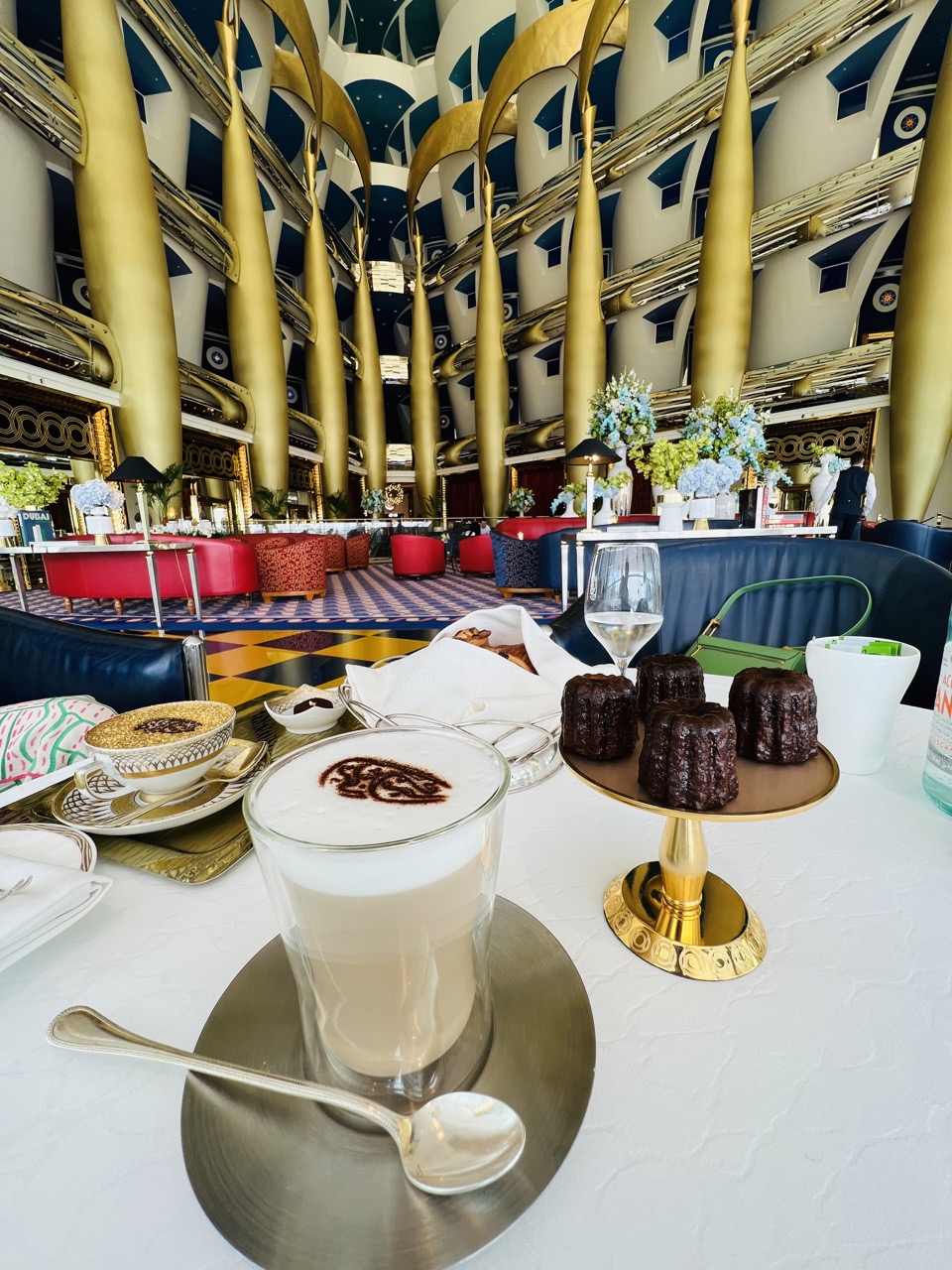 We explored this hotel by booking a breakfast at the Sahn Eddar Lobby Lounge. The lobby lounge provides stunning views of the gold interior of this hotel. So it’s a great way to not only explore the hotel from inside but also enjoy a very unique breakfast experience. Be sure to make an advance reservation as they don’t allow walk-ins. Also, this lounge has a minimum spend rule of AED 200 per person. I ordered their signature gold cappuccino which is a blend of premium coffee, fresh milk and fine 24 carat gold. And it’s served with Cru Guanaja chocolate marshmallows. It is a must try when you’re here.