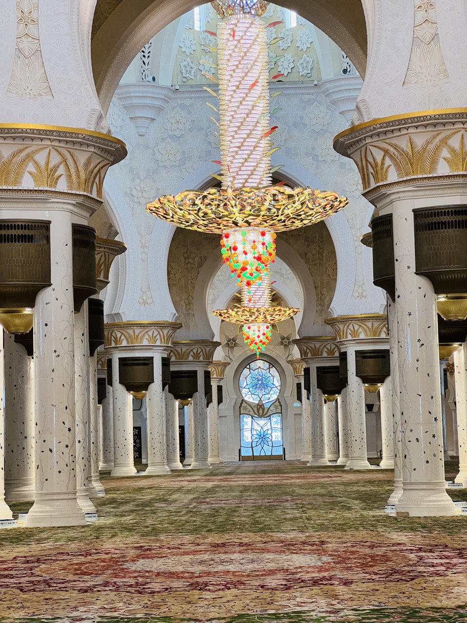 Our first stop was the spectacular and very famous Grand Mosque. This was one of the big reasons we decided to make a trip to Abu Dhabi. I have heard so much about the beauty and grandeur of this mosque that I really wanted to see for myself. And as expected, I was left speechless. I was in complete awe when I entered this magnificent mosque. Every element in the mosque such as the beautiful white marble, the solid gold chandeliers, the hand-knotted carpets and the intricately designed floor patterns are just stunning.