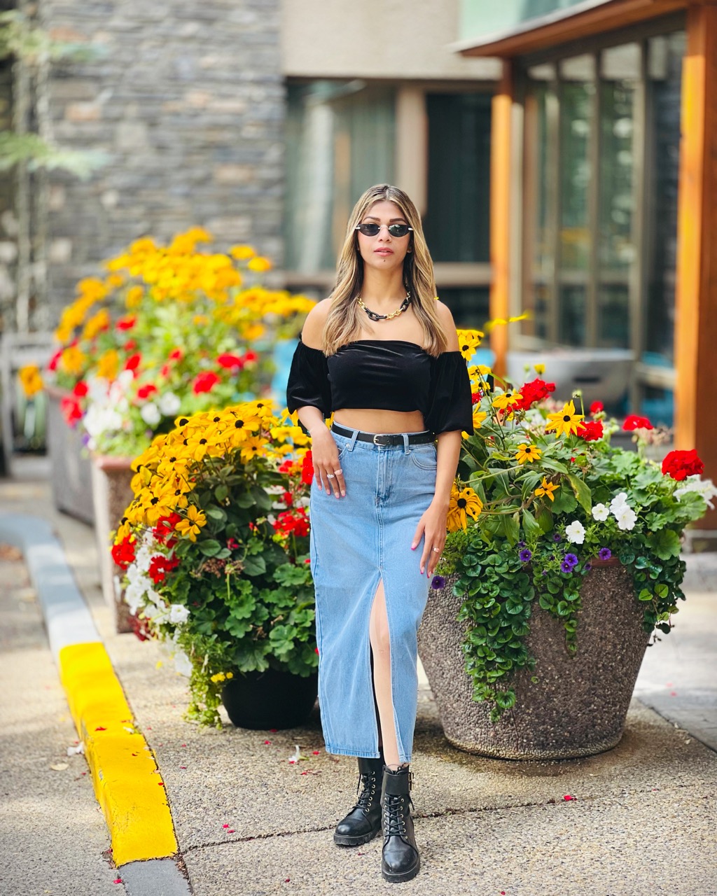 High Waist Long Denim Skirt